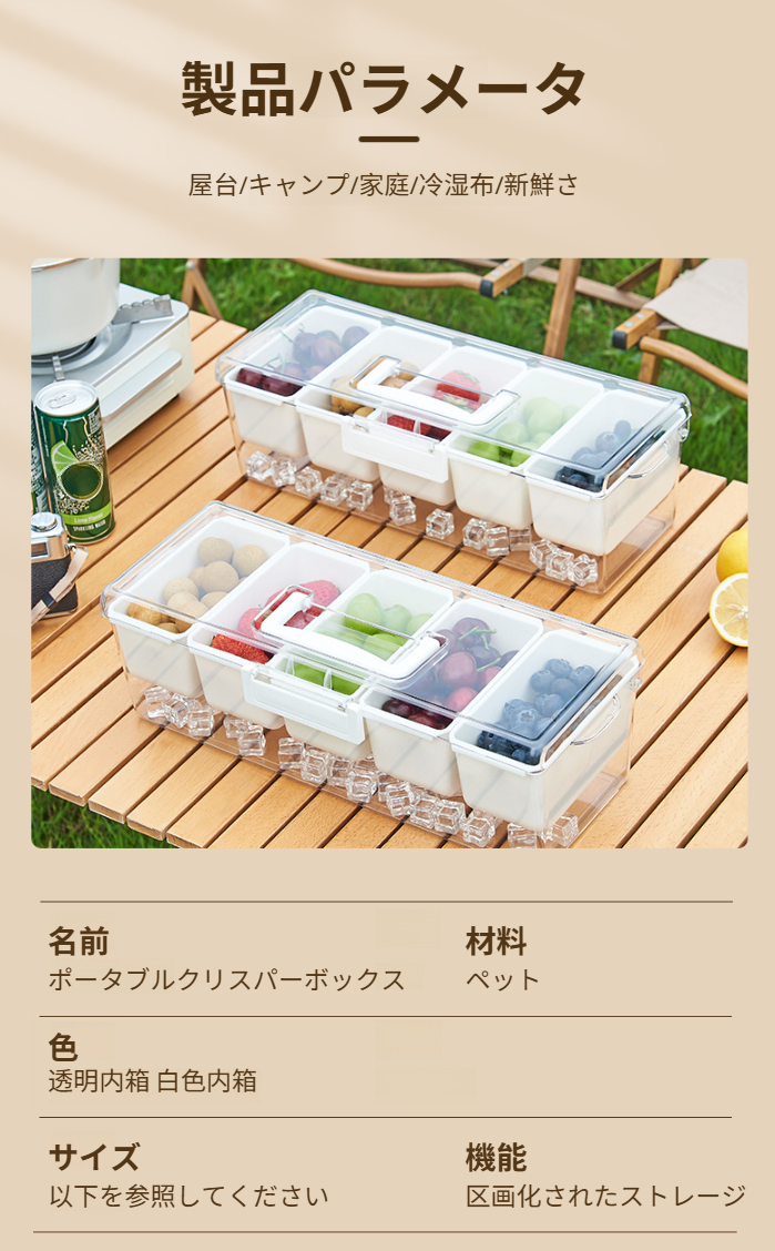 ポータブルサラダ収納ボックス屋外パーティーピクニックコンパートメントアイスボックスサラダトレイ家庭用プラスチック製鮮度保持ボックス